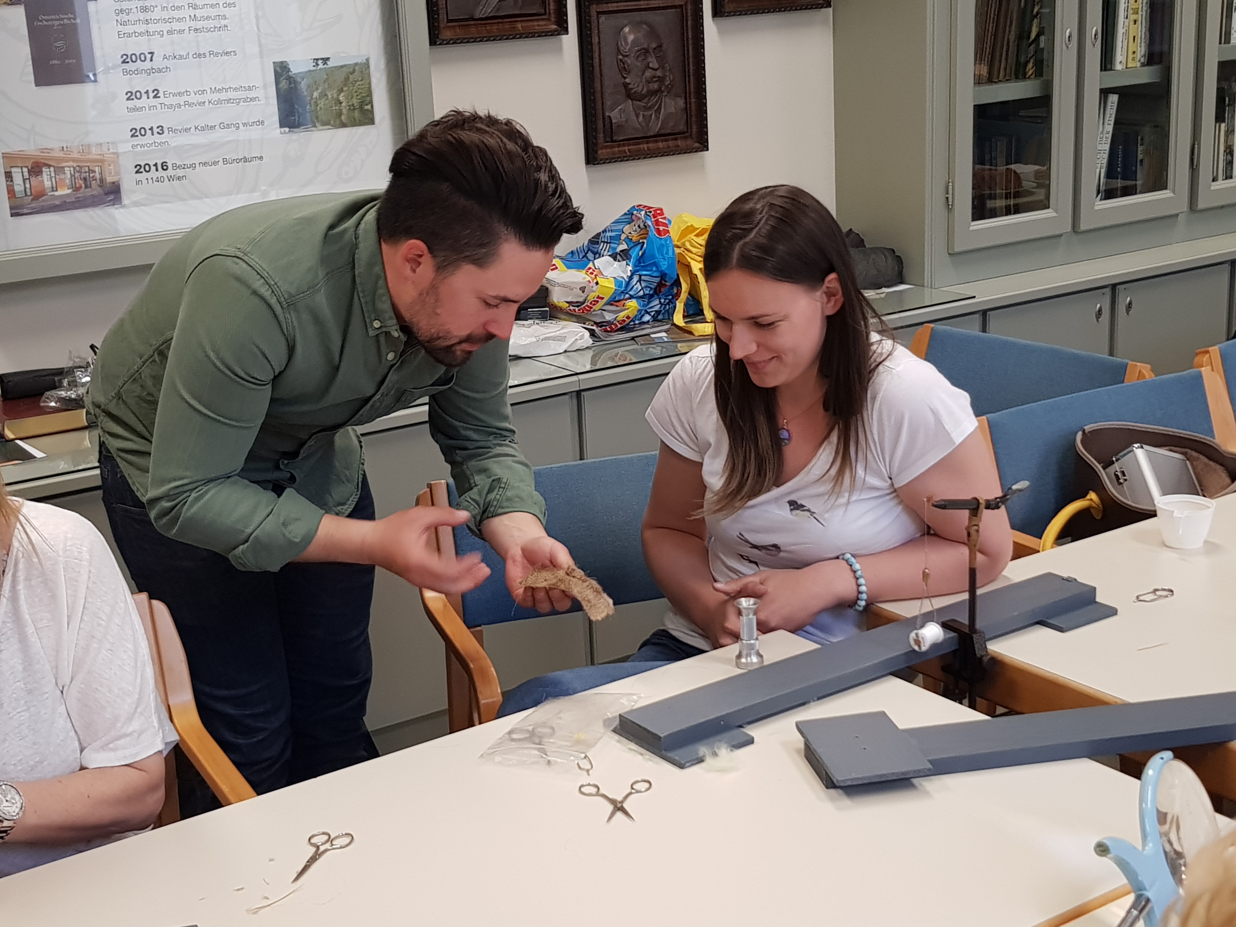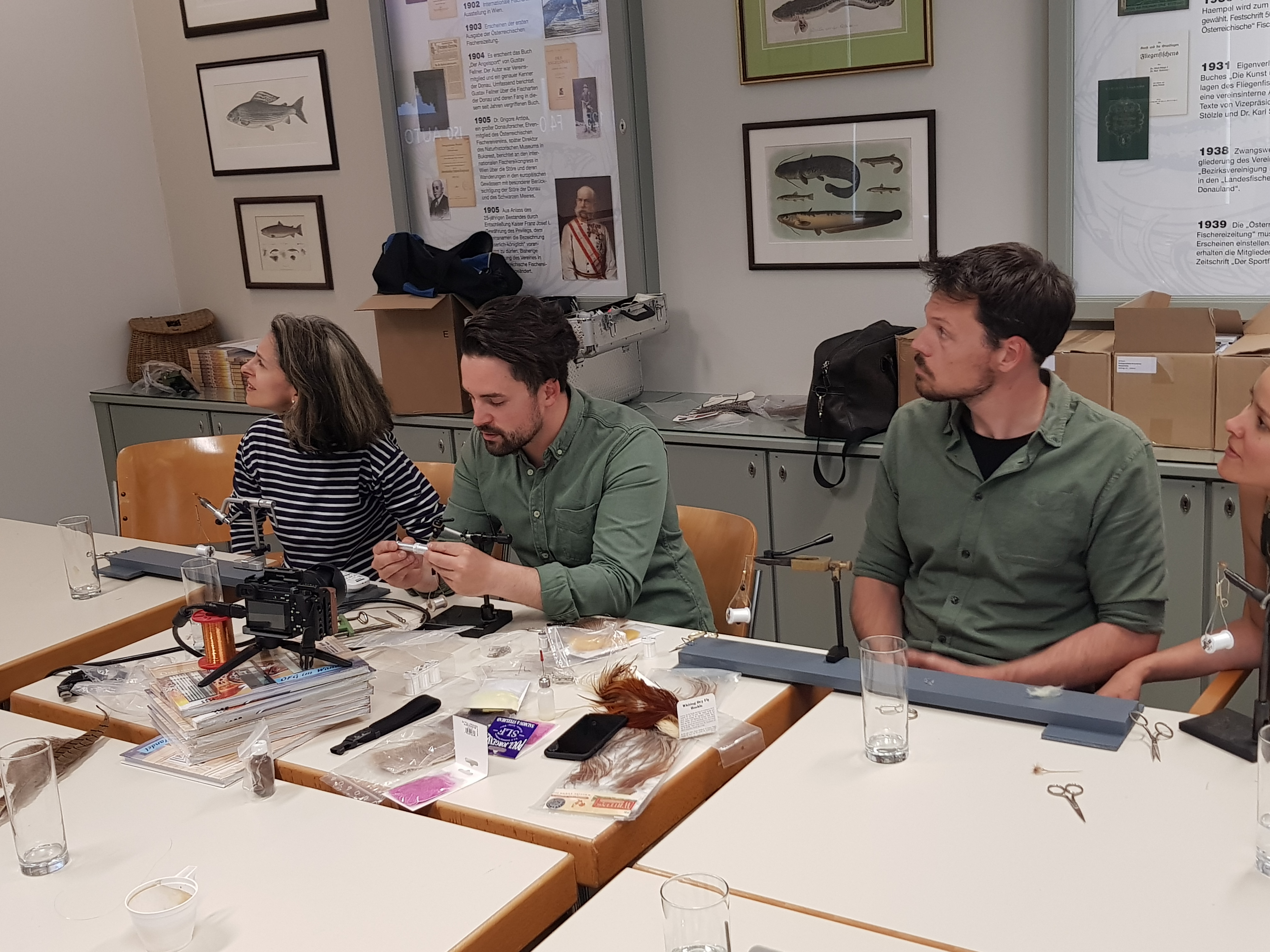 Mit Unterstützung der Angelsportfirma Klejch sowie zwei Vorstandsmitgliedern der Österreichischen Fischereigesellschaft, gegr. 1880 wurde motiviert, eifrig und dennoch in entspannter Atmosphäre gebunden.