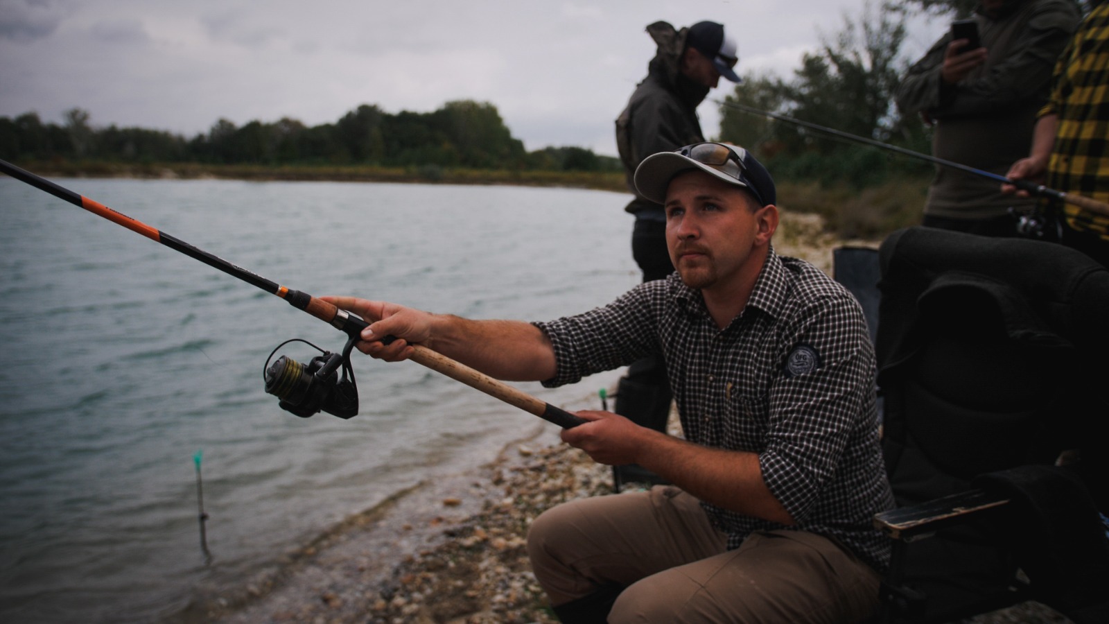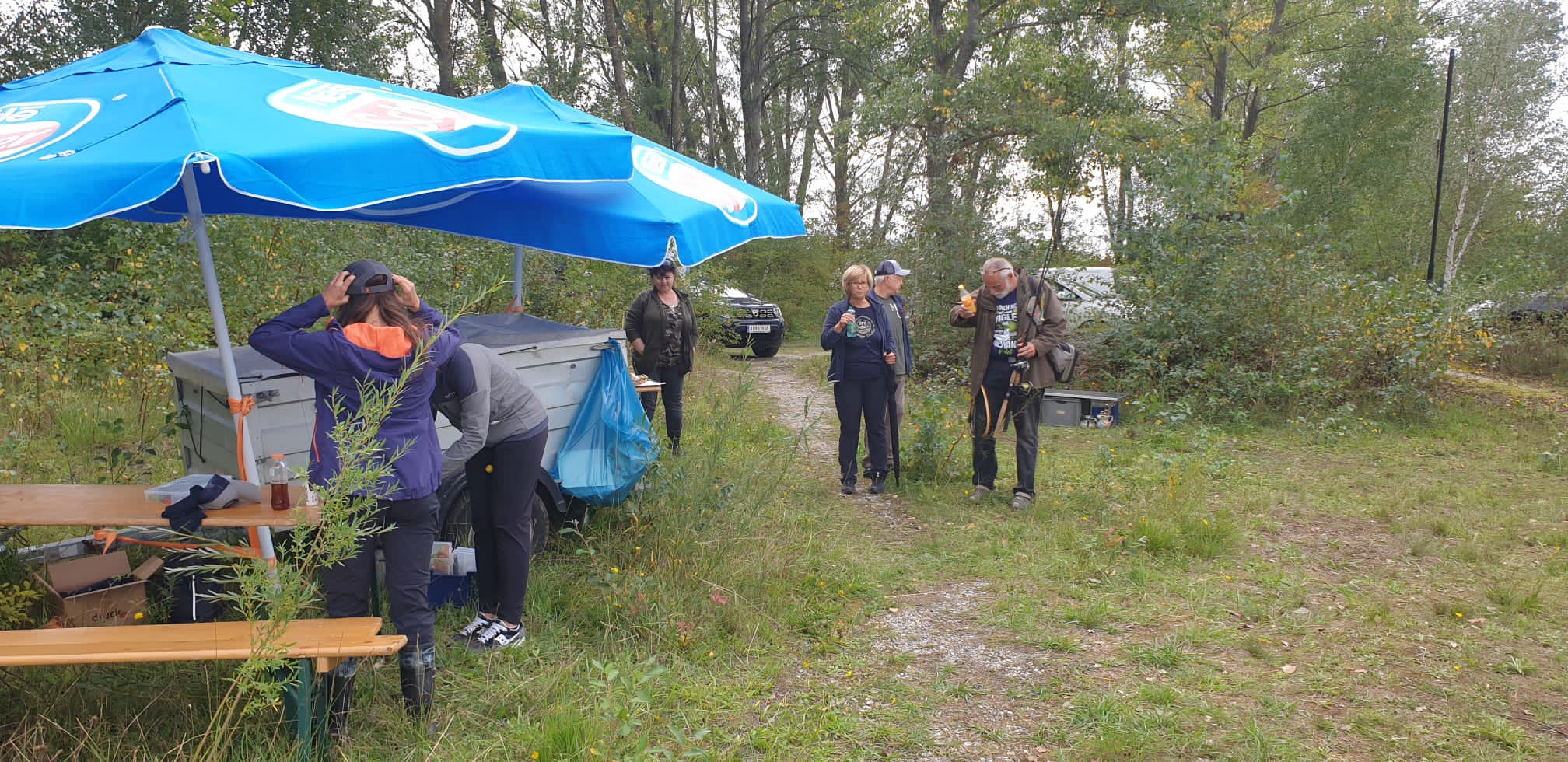 Mit Stolz darf ich schreiben, dass trotz des Regens, der ca. 1,5 Stunden andauerte, noch mehr als die Hälfte der Gruppe anwesend war und bei guter Laune beim neuerlichen Aufbau (Sonnenschirme, Brote, Getränke, Ruten) half und damit die Chance, wirklich auch andere Ruten auszuprobieren, genutzt wurde.