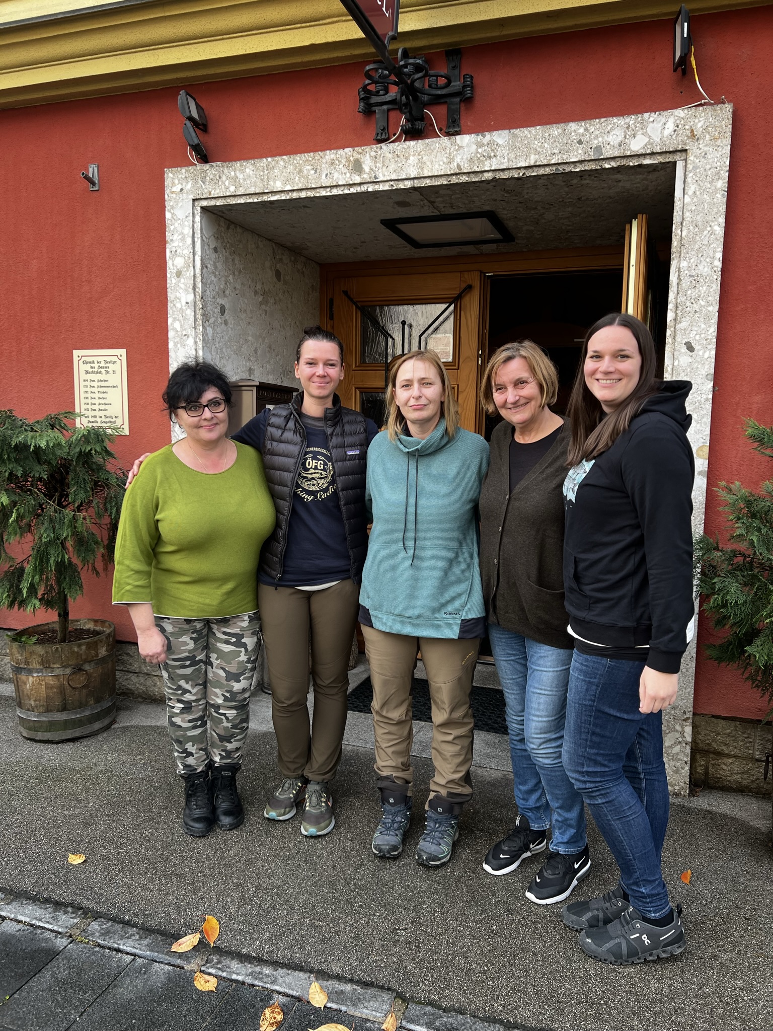 Wir wurden herzlich empfangen – Vorstandsmitglied und Bewirtschafter des Reviers Richard Hintersteiner war mit seinem Aufseherteam vor Ort und hieß die Damen willkommen. Die liebe Fishing Lady Julia (ein großes Danke!) brachte selbstgemachtes Salzgebäck sowie Schaumrollen und natürlich warmen Kaffee und Tee mit und lud zum kurzen Brunchen ein, während wir Informationen über das Revier, die Fischerei, Wanderwege etc. erhielten.