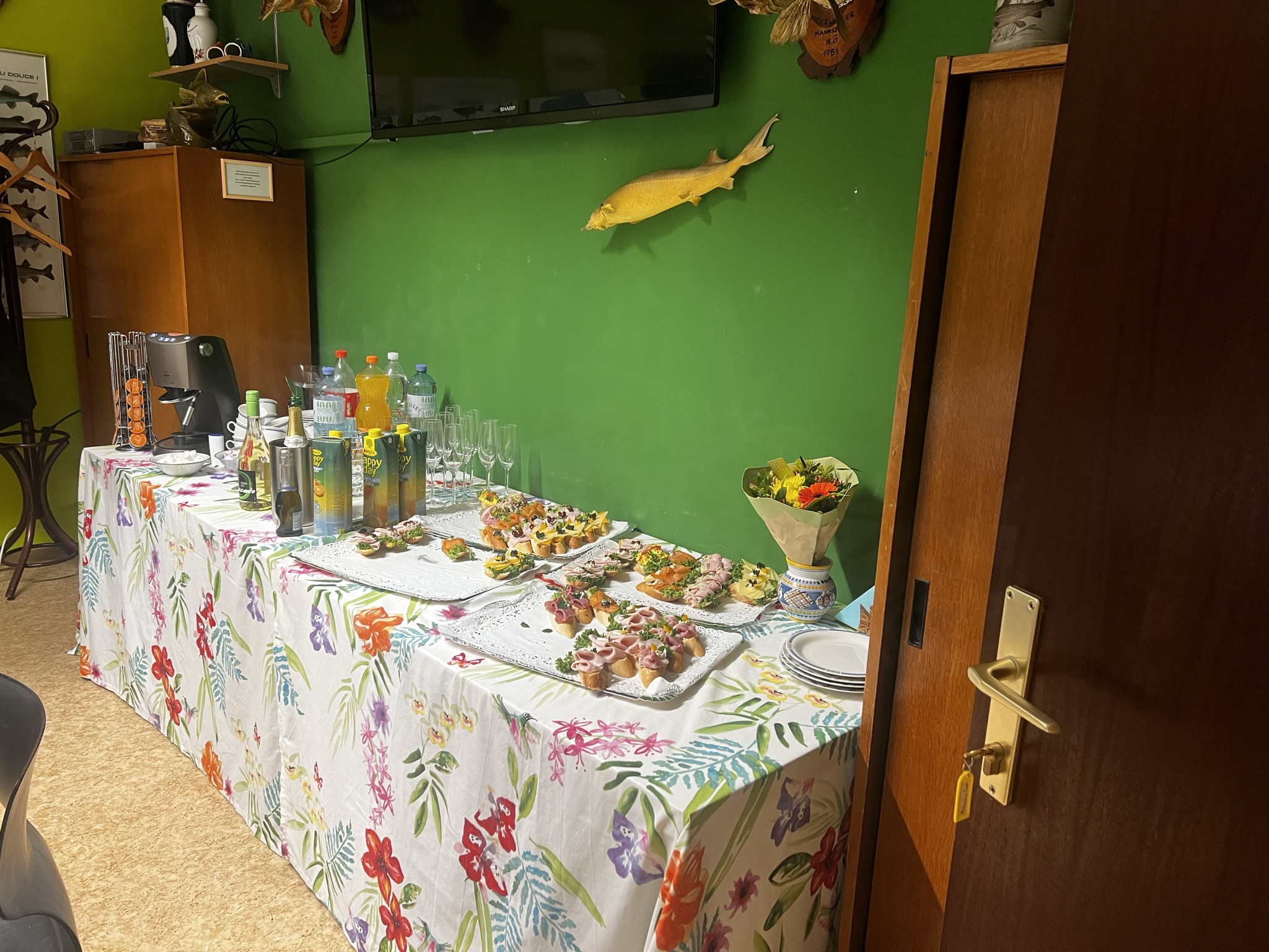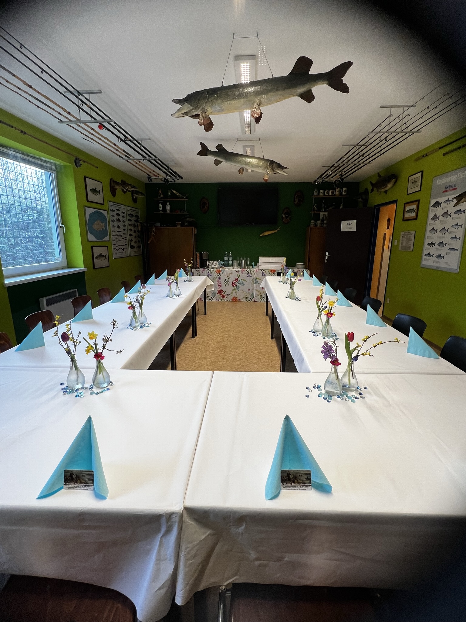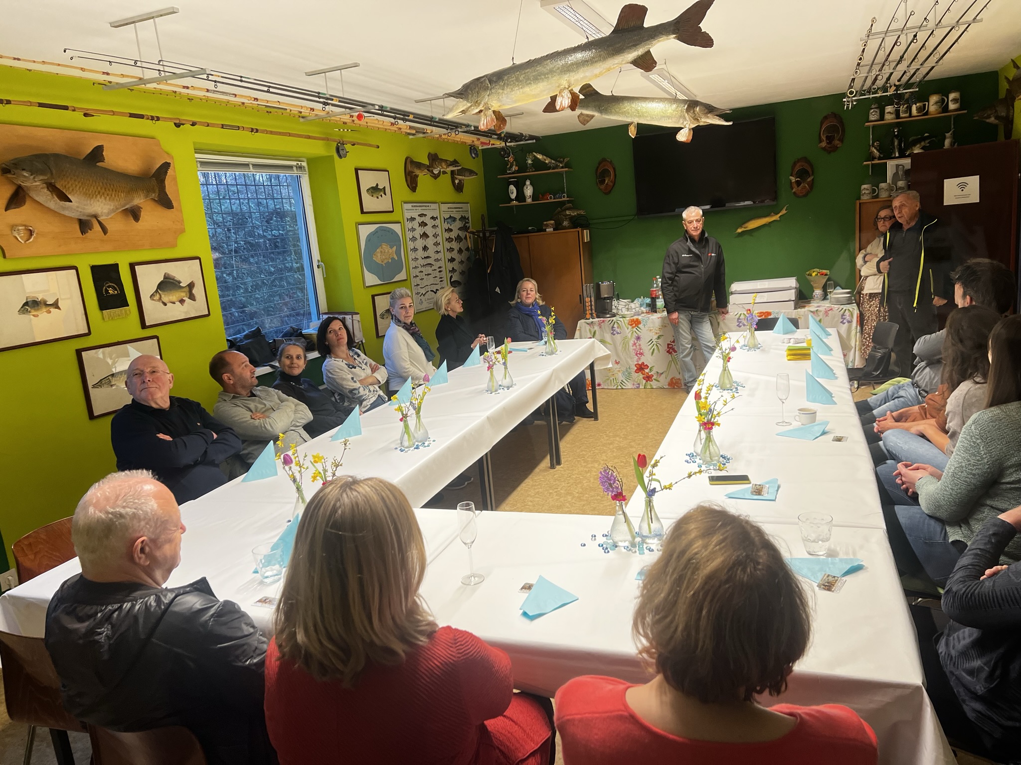 Es war ein herzlicher und freundlicher Empfang der uns seitens des 1. Wiener Fischereimuseum entgegengebracht wurde. Zusätzlich wurde für unser Treffen eine Tafel zusammengestellt, welche frühlingshaft einladend war. Nach einer kurzen Ansprache des Obmanns, begleitet vom Museumswart, wurden wir mit vielen lehrreichen und interessanten Informationen gefüttert und erhielten so auch einen Abriss der Geschichte der Angelfischerei in Wien vermittelt.